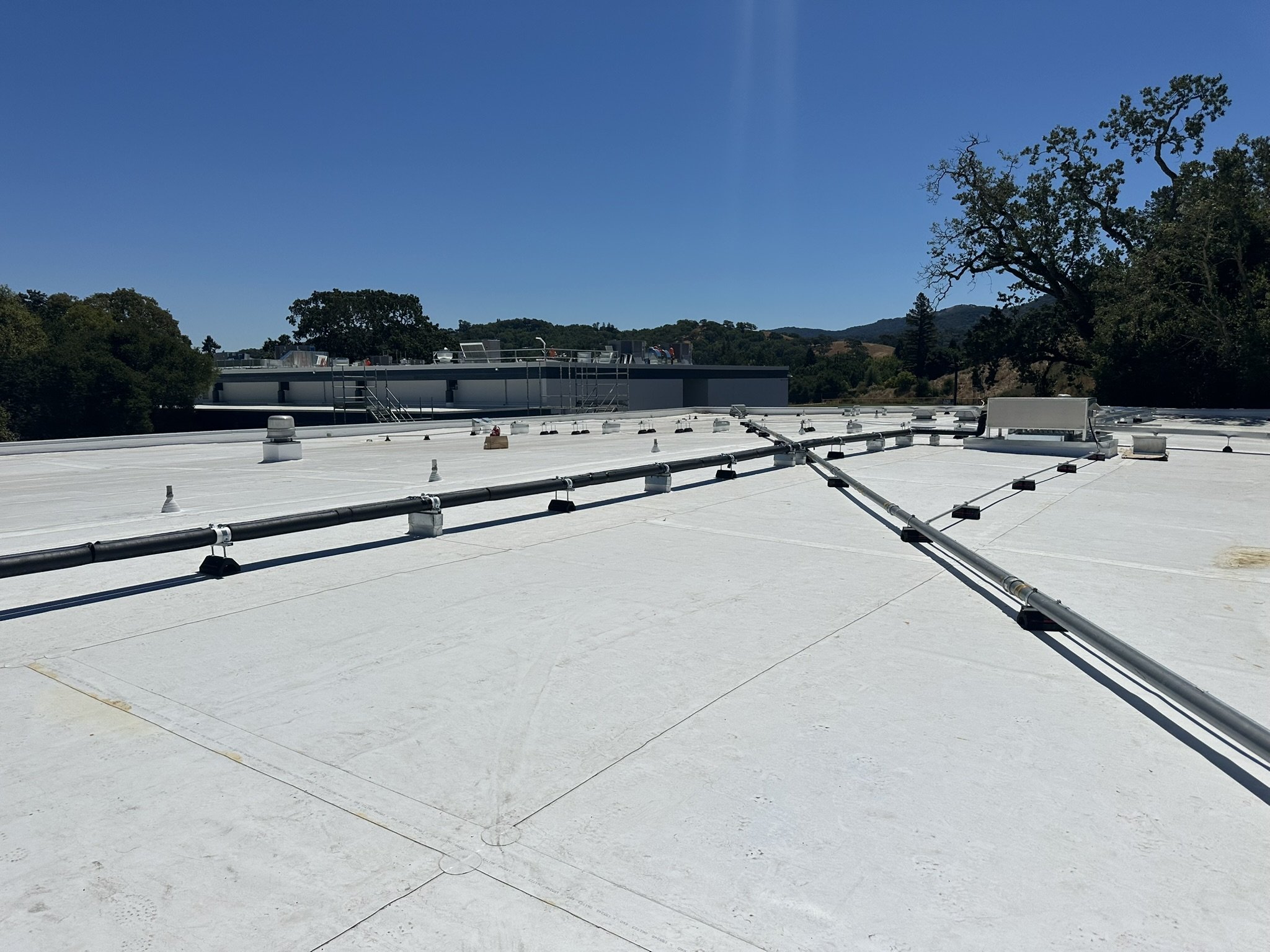 The primary challenge was not just the replacement itself, but the strategic relocation of heavy machinery. We were tasked with replacing the outdated built-up roof with a modern TPO roofing system and replacing all existing rooftop HVAC units.